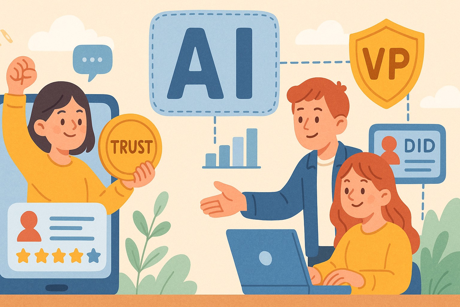 • その信用が**VC(Verifiable Credential)**に変換される